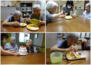豪華なケーキができがり、入居者の皆様で美味しくいただきました。